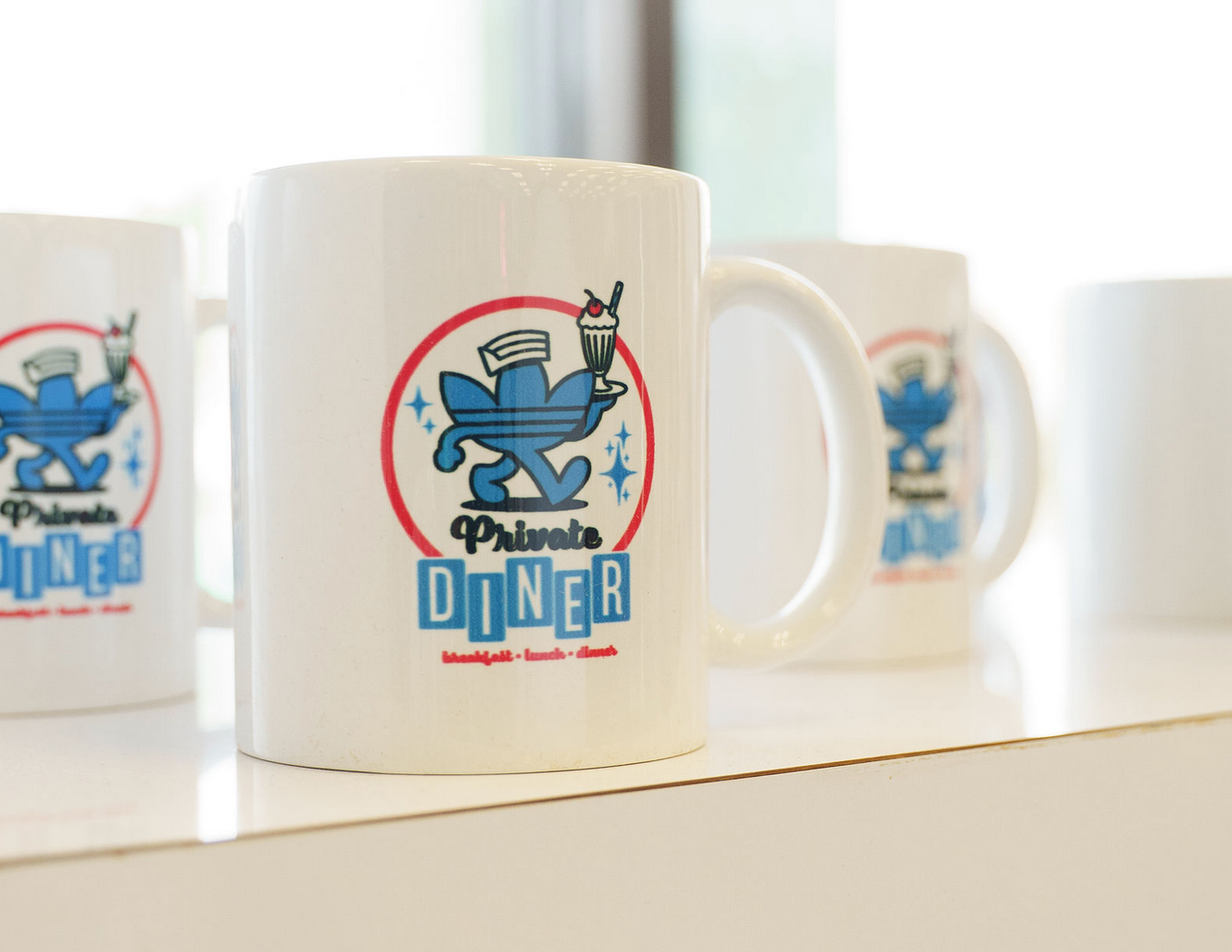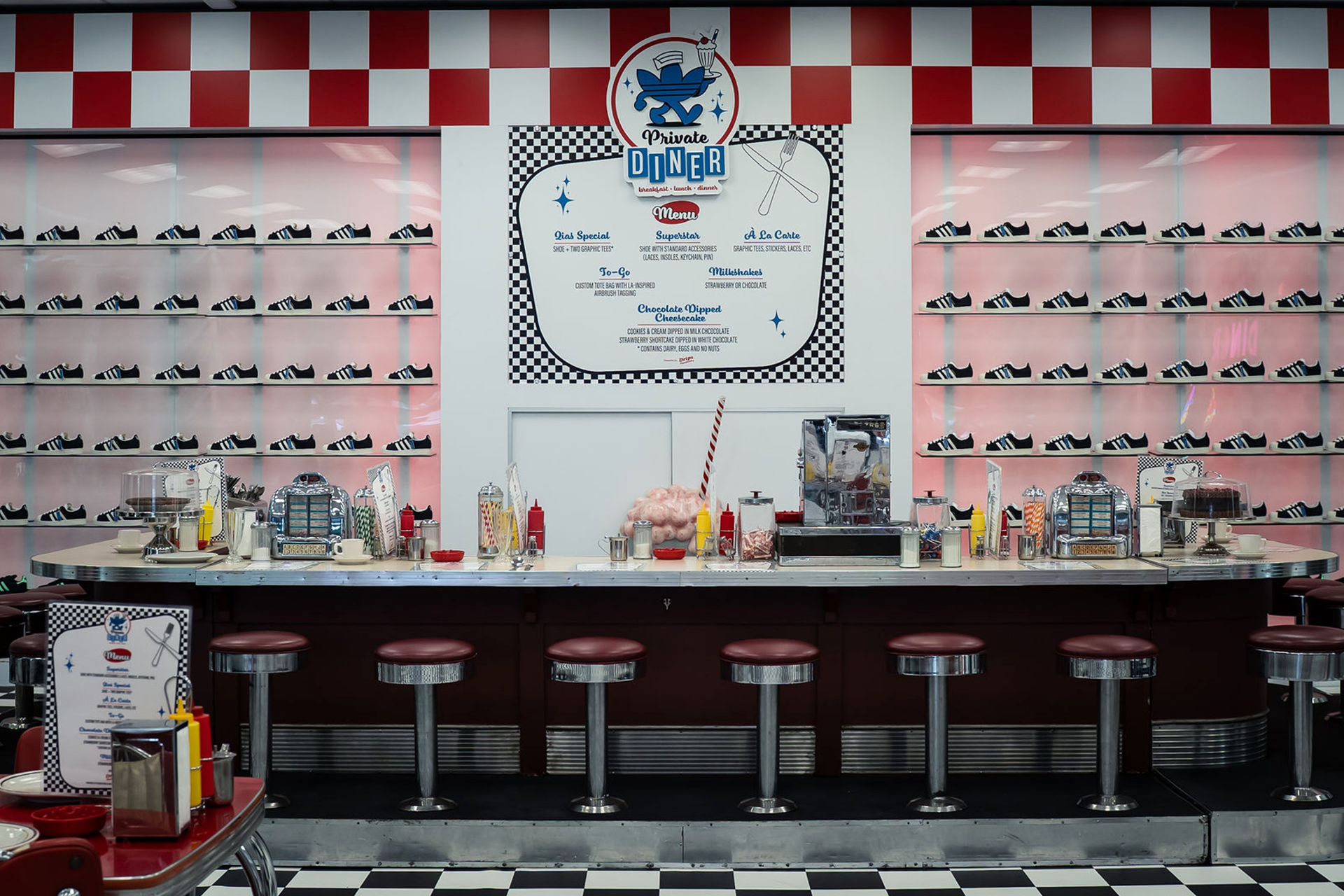 Takeover of Private Sneakers store in Long Beach, CA to debut custom Adidas shoe. The store was made to look like a retro diner complete with waiters, laminated menus, mugs, and more. I designed the logo and did additional branding/collateral. Agency: Colorway