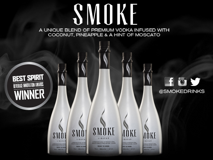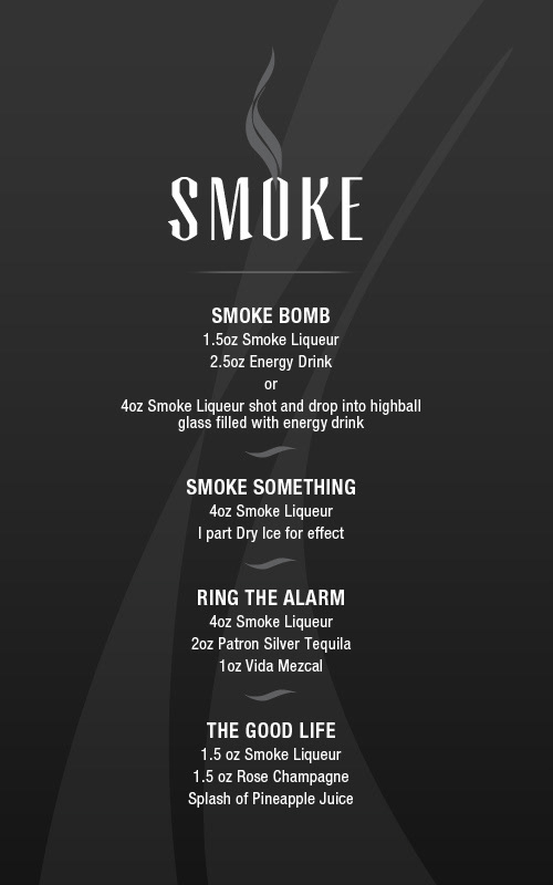 I was asked to help with the launch of SMOKE liqueur. The logo and bottle were already in development but I made improvements to both then ultimately handled all marketing and design for the brand (750 & mini bottle design & mechanical files, case design, print & web ads, social media graphics, mobile, POS, billboards, invites, drink menus, step & repeats, retractable banners, advertorial design and photoshoot direction, video loop graphics, product design, etc).